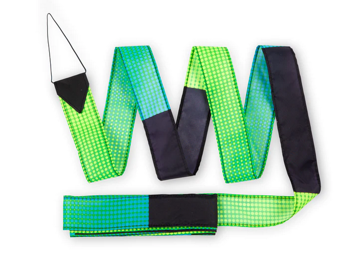 This exciting ribbon tail features a unique geometric gradient and bold black stripes – great for adding a eye-catching flair to any kite.